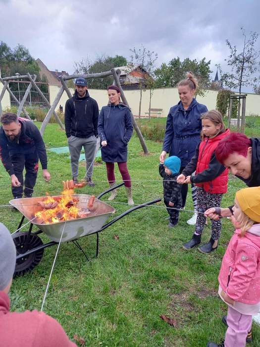 V pátek 11. 10. jsme se společně s dětmi, rodiči, prarodiči i kamarády sešli v areálu zámeckého parku a vydali se na travnaté hřiště pouštět draky. I přes nepřízeň počasí - slabý vítr se nám podařilo draky vypustit a někteří vyletěli do takových výšek, že jsme měli strach, aby se tam nahoře nesrazili s letadly. Po ukončení letů jsme si opekli špekáčky na školní zahradě, pokecali mezi sebou navzájem a bylo nám všem spolu moc dobře.