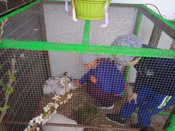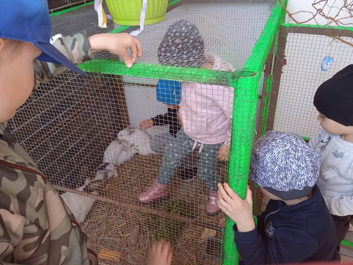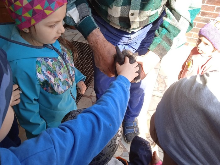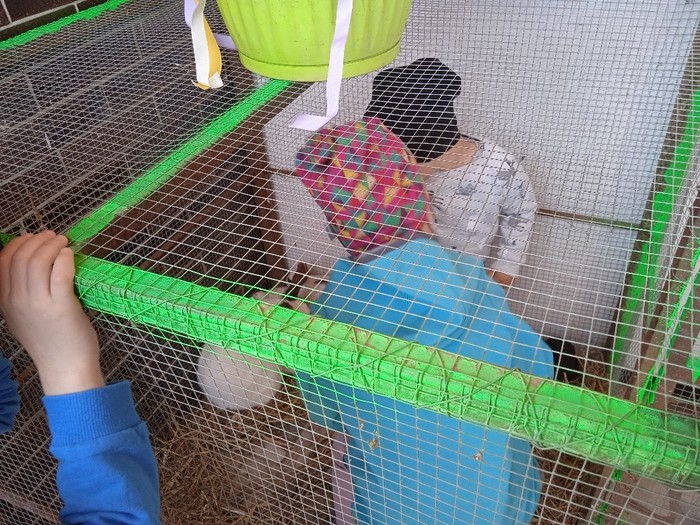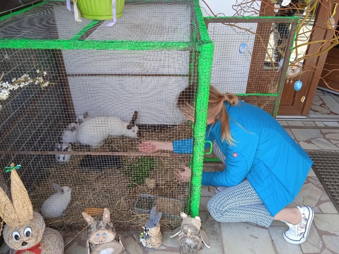 Na zelený čtvrtek jsme se vypravili k manželům Polišenským, kteří nás pozvali na králíčky. Pan Polišenský umístil na své schodiště klec, ve které měl samici i s mladými. Děti byly nadšené a hned si k nim vlezly dovnitř. Moc děkujeme za příjemné zpestření Velikonoc.