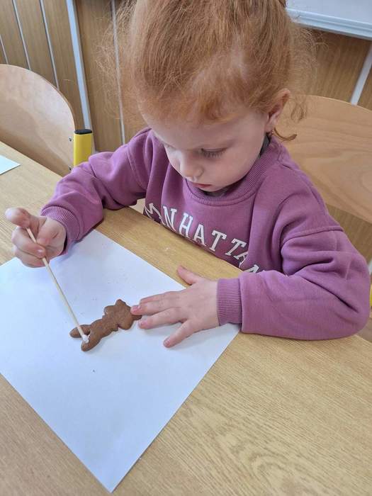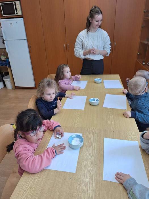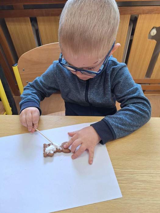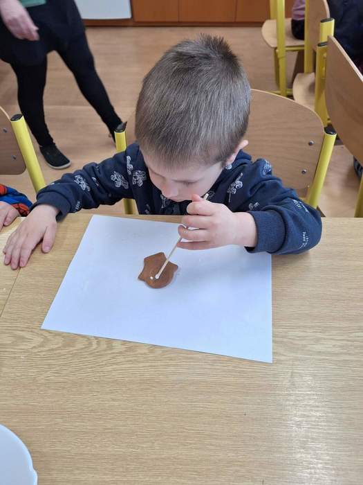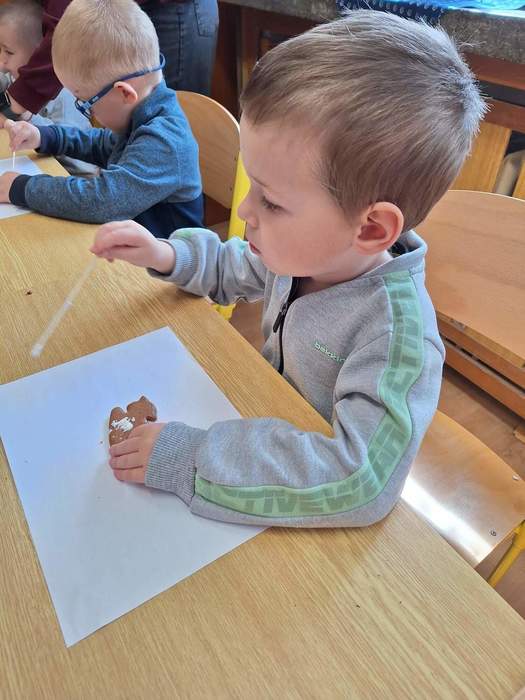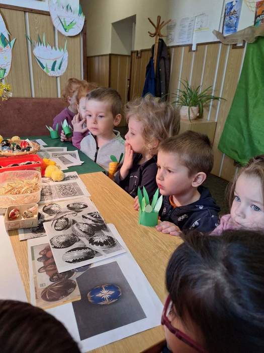 Na prvním stanovišti se děti seznámily s velikonočními tradicemi a zvyky. Na druhém si mohly samy ozdobit velikonoční perníčky. Třetí stanoviště bylo tvořivé – děti zde vyráběly z papíru mrkvičky, které jsme si po návratu do školky ještě společně dozdobili vajíčky. Na čtvrtém stanovišti jsme si povídali s milou paní o tom, jak se zdobí kraslice pomocí proužků slámy.