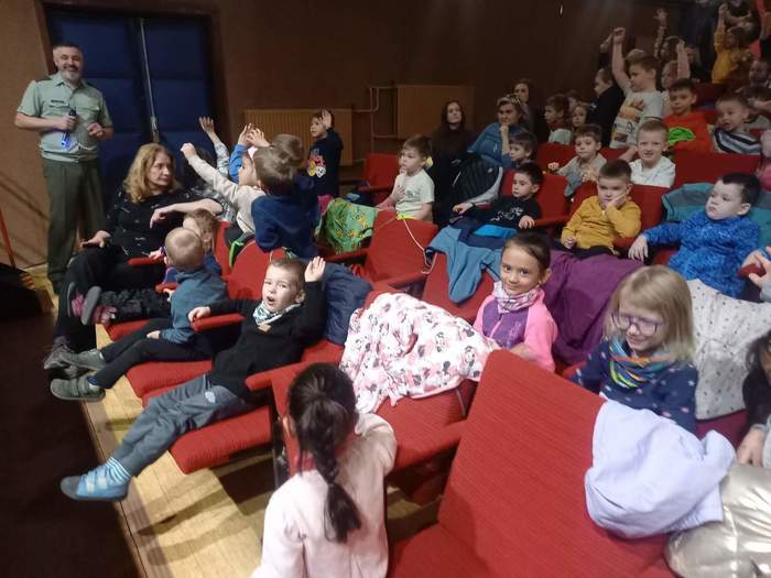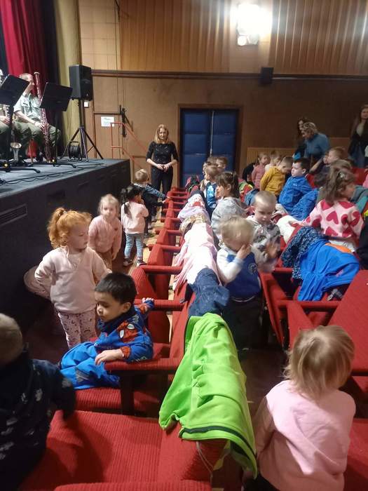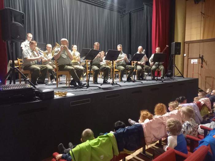 Cílem naší cesty bylo místní kino, kde se konalo hudební vystoupení Vojenské hudby. Hudebníci si pro děti připravili zábavný program plný známých melodií z českých večerníčků. Děti se aktivně zapojovaly – poznávaly jednotlivé písničky i hudební nástroje, které je doprovázely.